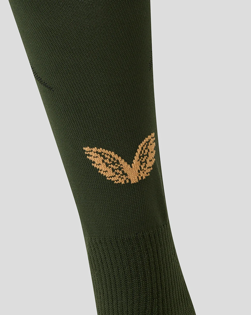 Ga vol vertrouwen het veld op met de FC Utrecht Uitkousen 25/26. Ze zijn uitgerust met een gevoerde hiel en voetbed om wrijving te verminderen en comfort te verhogen, ook bij zware belasting. De subtiele ‘FCU’-initialen op het scheenbeen maken het plaatje compleet – een verfijnd eerbetoon aan de club.